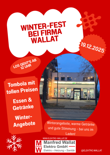 Am Freitag, den 19. Dezember 2025, laden wir Sie herzlich zu unserem großen Winter-Fest ein! Ab 12:00 Uhr erwartet Sie bei uns vor dem Laden eine gemütliche Winter-Atmosphäre – perfekt, um gemeinsam ins Wochenende zu starten und die Vorweihnachtszeit zu genießen.